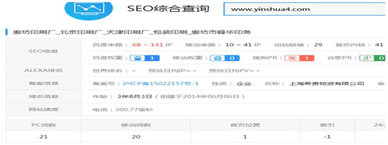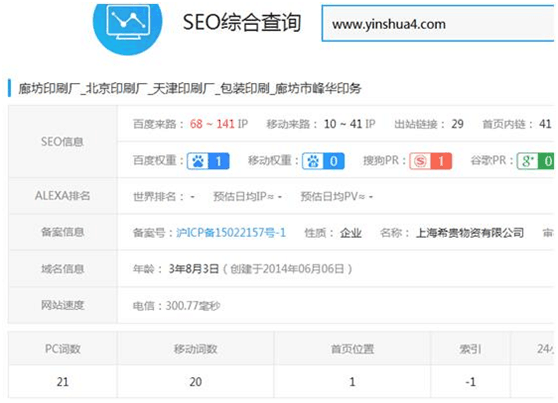 而他提供给我们优化的词是北京印刷厂,天津印刷厂,廊坊印刷厂,印刷厂一个主词和三个地区的长尾词这样的做词方式在常见zhong很少的做很多地区的除非加盟形式的网站。